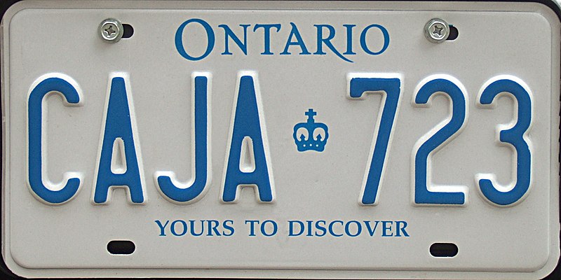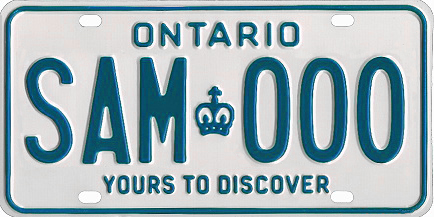 Previously, Ontario plates were blue on white and contained the slogan, “Yours to Discover.” The plates were fine and many folks saw no reason for reversing the colours and replacing the old slogan with, “A Place to Grow.” (Plates on commercial vehicles now contain the slogan, “Open for Business.”) Well, it happened and so that was that, or so we thought.